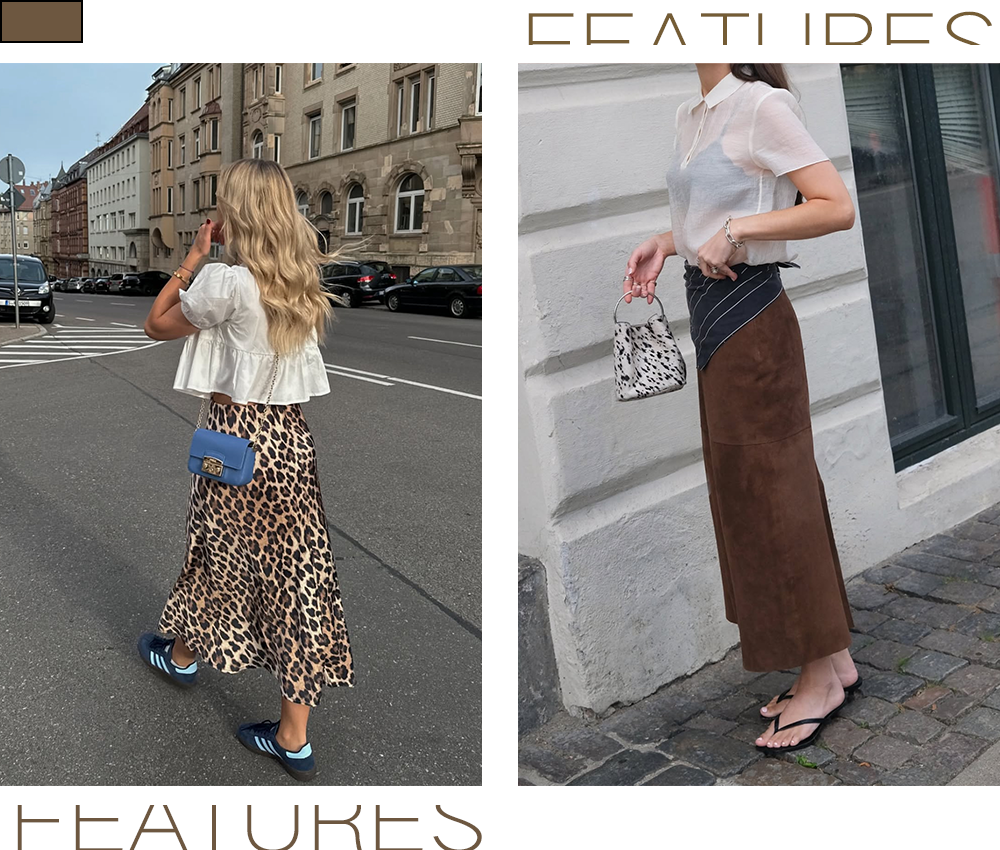 动物纹让栗子色更加丰富,豹纹、奶牛纹自带野生感,马毛材质的光泽纹理则更适合秋季,放在半裙上,如同落叶随风起舞。