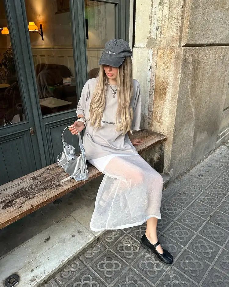 白色纱裙的微透感,总是会营造出梦幻朦胧的诗意美感,它单穿时飘逸浪漫,而与打底短裤双层叠搭时,层次的效果让整体造型都可以被松弛随性的感觉所笼罩。