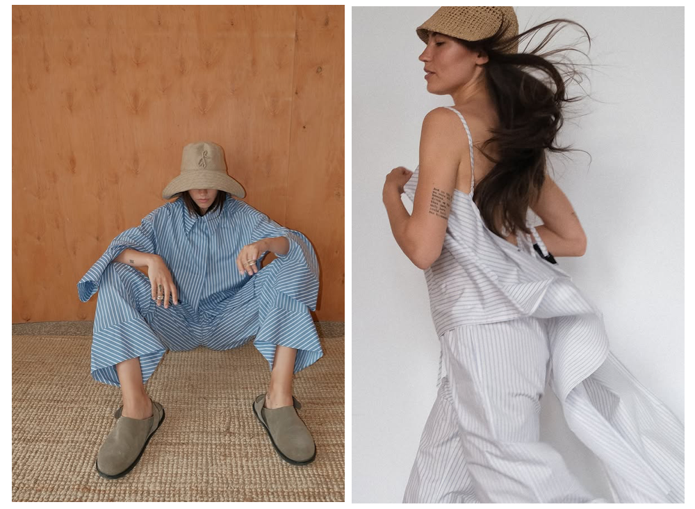 天然棉麻材质自带浓厚的自然气息,特别是全身穿着时,可以诠释其松弛本真之美。尝试用短款Crop Bra搭配高腰廓形阔腿裤,或是选择一件宽松领上衣,简约的板型设计,清爽干练。