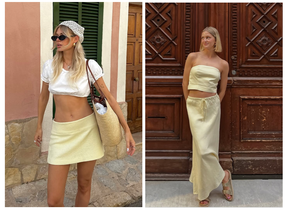 淡黄色总能带来柔和又轻盈的感受,淡黄色裙装,更是能将元气与甜美感展现出来,自带清新微甜的气息,不过分甜腻,轻盈的色调也很能提亮肤色。