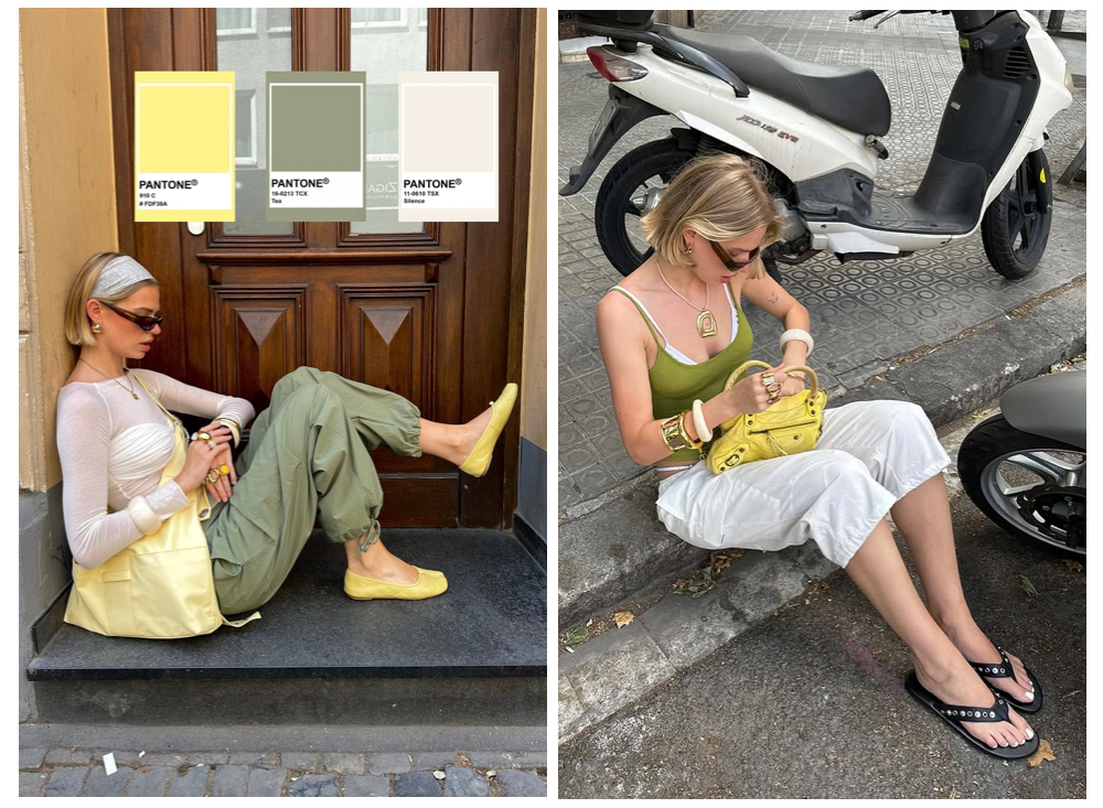 牛油果绿清爽感十足,驾驭起来毫无难度,很适合打造干练帅气的造型,无论是挺括的衬衫、利落的工装裤,还是简约的吊带上衣,青绿色都能为造型赋予一份独特的洒脱与活力。