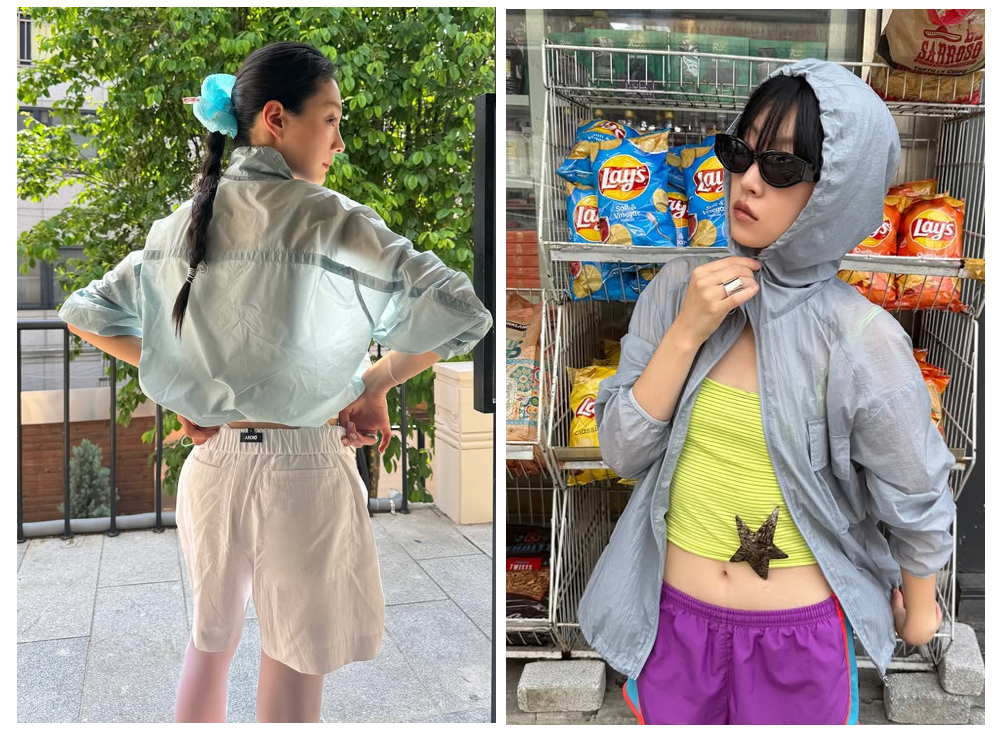 浅色系防晒衣其实也有种甜美的基调,它不会过于“小女生”,搭配运动短裤,瞬间注入满满的运动气息,想要造型更出彩,只需加入一点跳跃的亮色作为点缀,一个清爽时髦,又充满青春活力的造型就能轻松搭配出来。