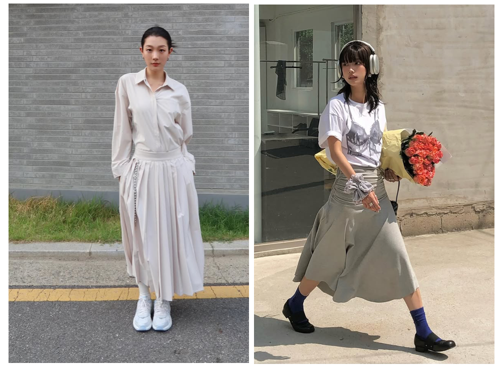 棉麻长裙巧妙保留了长裙的浪漫甜度,可以选择带有腰部抽绳设计的款式,可以根据身形调节松紧,强调腰线,也可以尝试上下身颜色对比度强烈的长裙,比如浅色上衣拼接深度裙摆,在随性中穿出好比例。