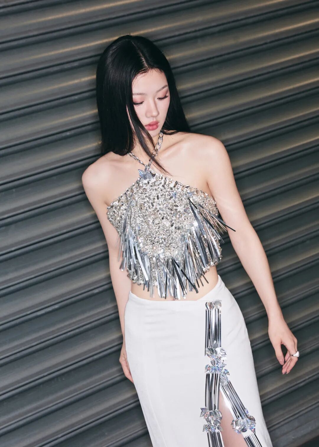 通过巧妙的层叠,像金靖这样,穿搭银色系单品时注意露肤度,营造出既通透又充满防御感的矛盾美学,呼吸感与神秘感并存。