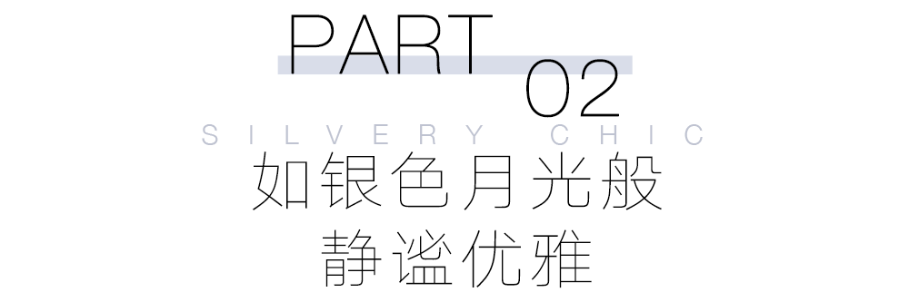 冷冽、疏离、独自璀璨,当不同的材质染上银色调,无须多余装饰已然足够夺目,每一个转身都漾起粼粼波光。
