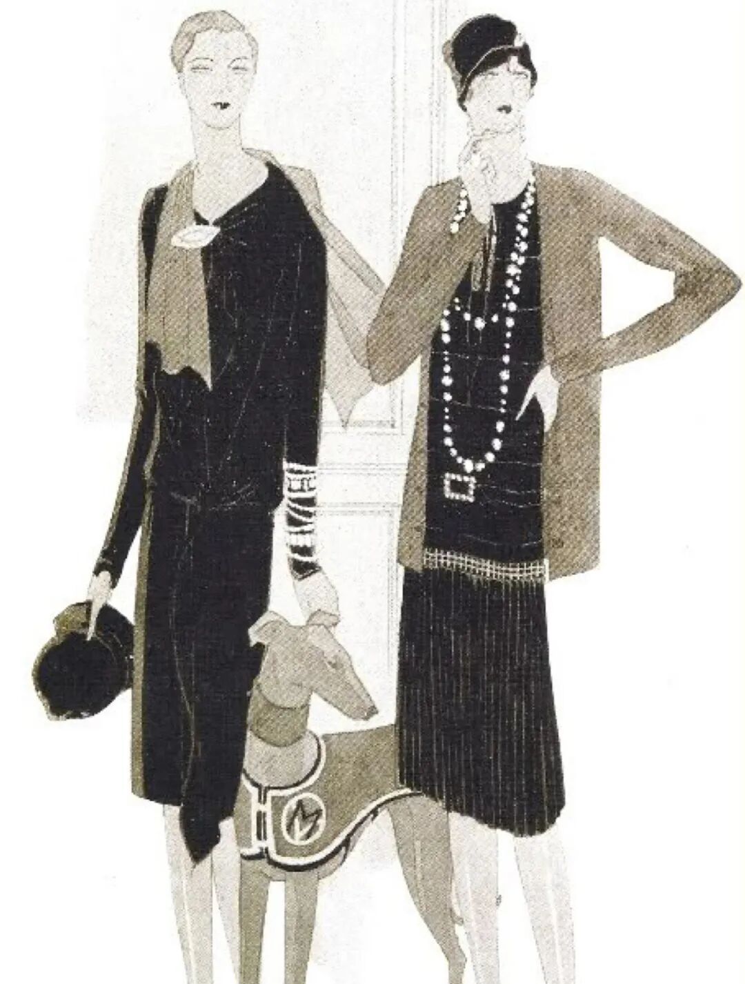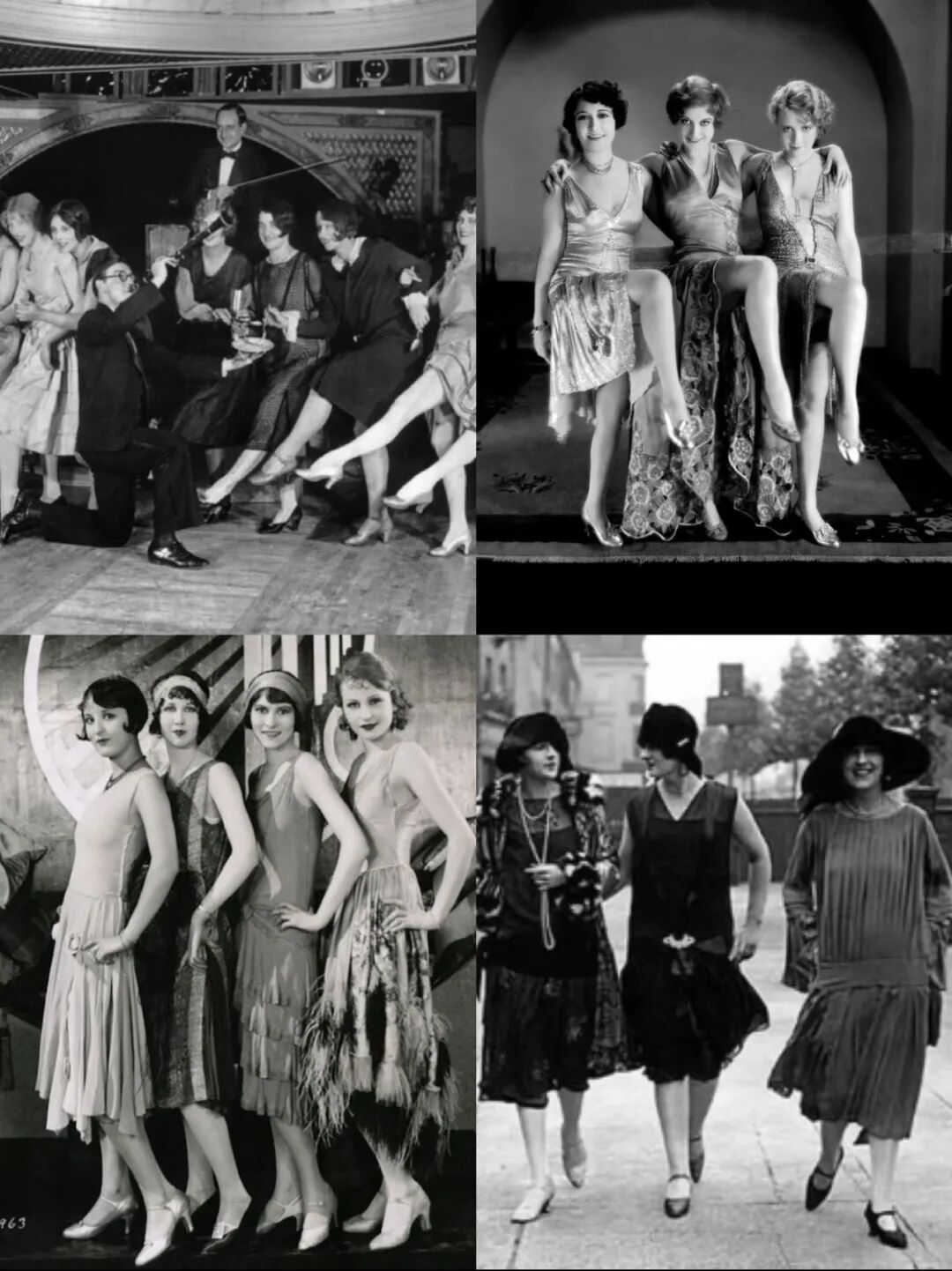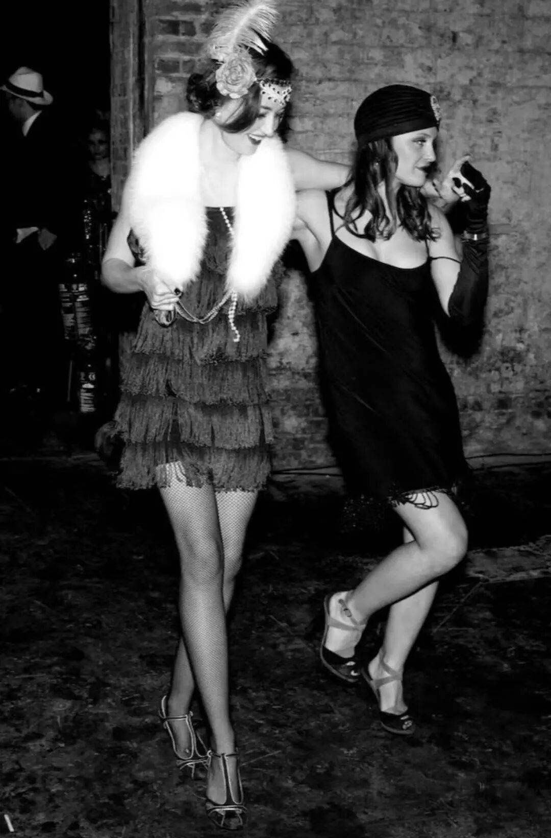 20世纪年代的flapper女郎(随意女郎),曾是那个时代最鲜明的文化符号之一,她们穿着宽松直筒的低腰连衣裙,甩掉了束腰和繁复的裙摆,像男人一样喝酒、工作,并敢于自我表达,以短发、香烟与爵士乐,向社会发出关于女性独立与自由的强烈宣言。