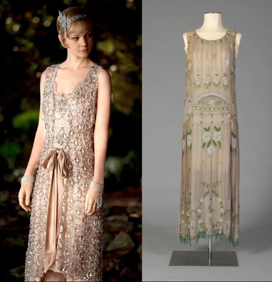 低腰线的魅力在于它的“松弛”与“摇摆”。当裙摆不再高高束起,而是垂落至胯部甚至大腿,身体的重心随之下移,带来一种与传统女性形象截然不同的视觉冲击。20世纪20年代的flapper裙多以流苏、亮片、薄纱点缀,随着舞步摇曳生姿,成为舞池里最自由的表达。