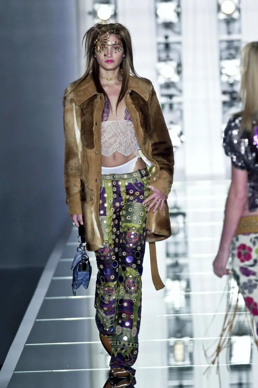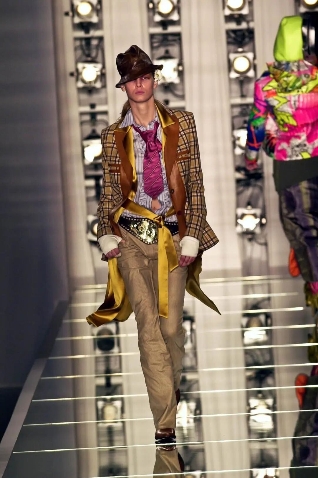 这种“失序美学”,从世纪之交的千禧风格中有迹可循。John Galliano在Dior 2001秋冬系列将低腰裤、丝绸、护目镜、毛线帽混搭得毫无章法,却精准勾勒出一场自由冒险,漆皮或麂皮外套下可以是性感透视内搭,也可以是格纹衬衫,每一种组合都带着自由与不羁。