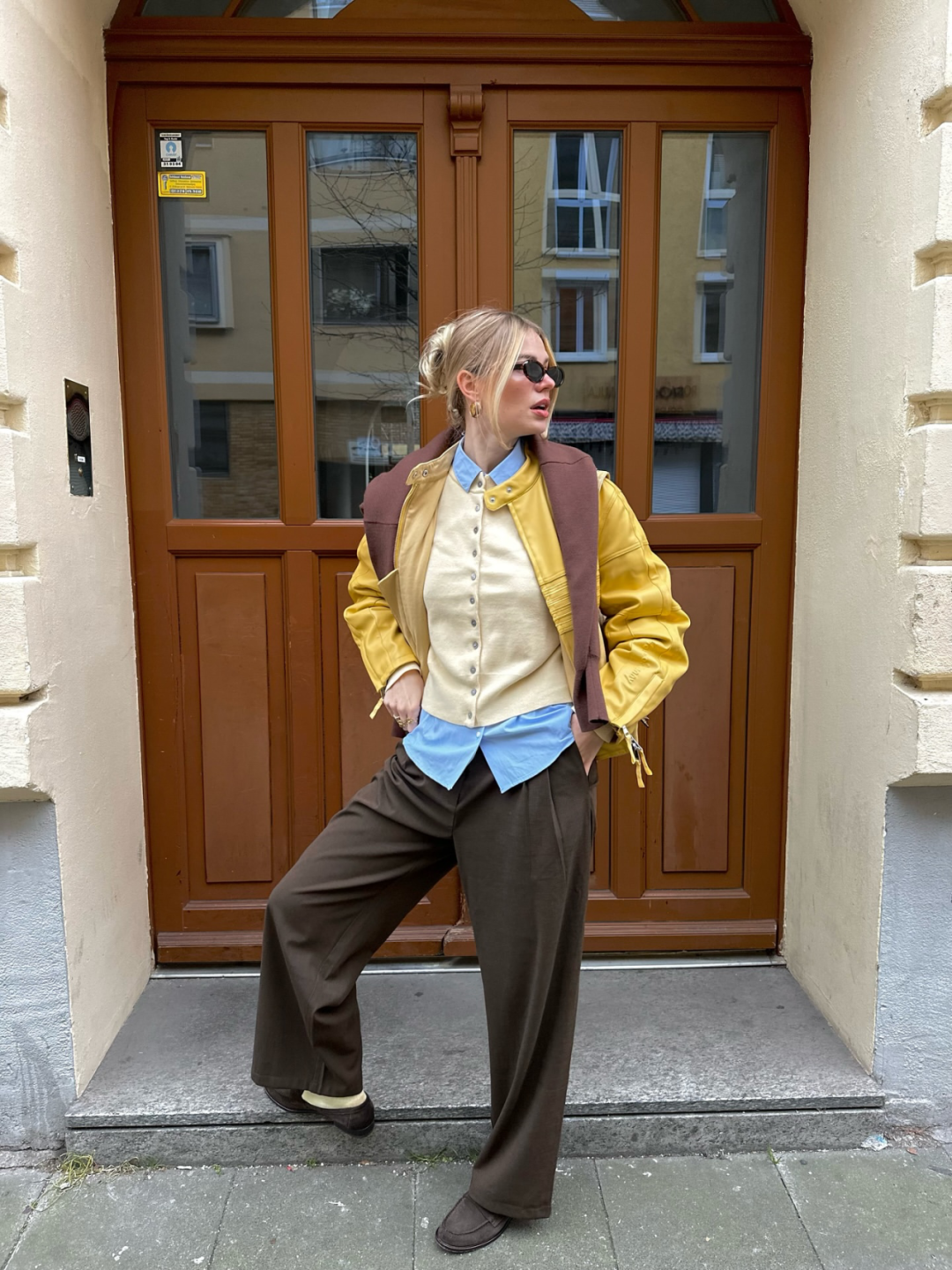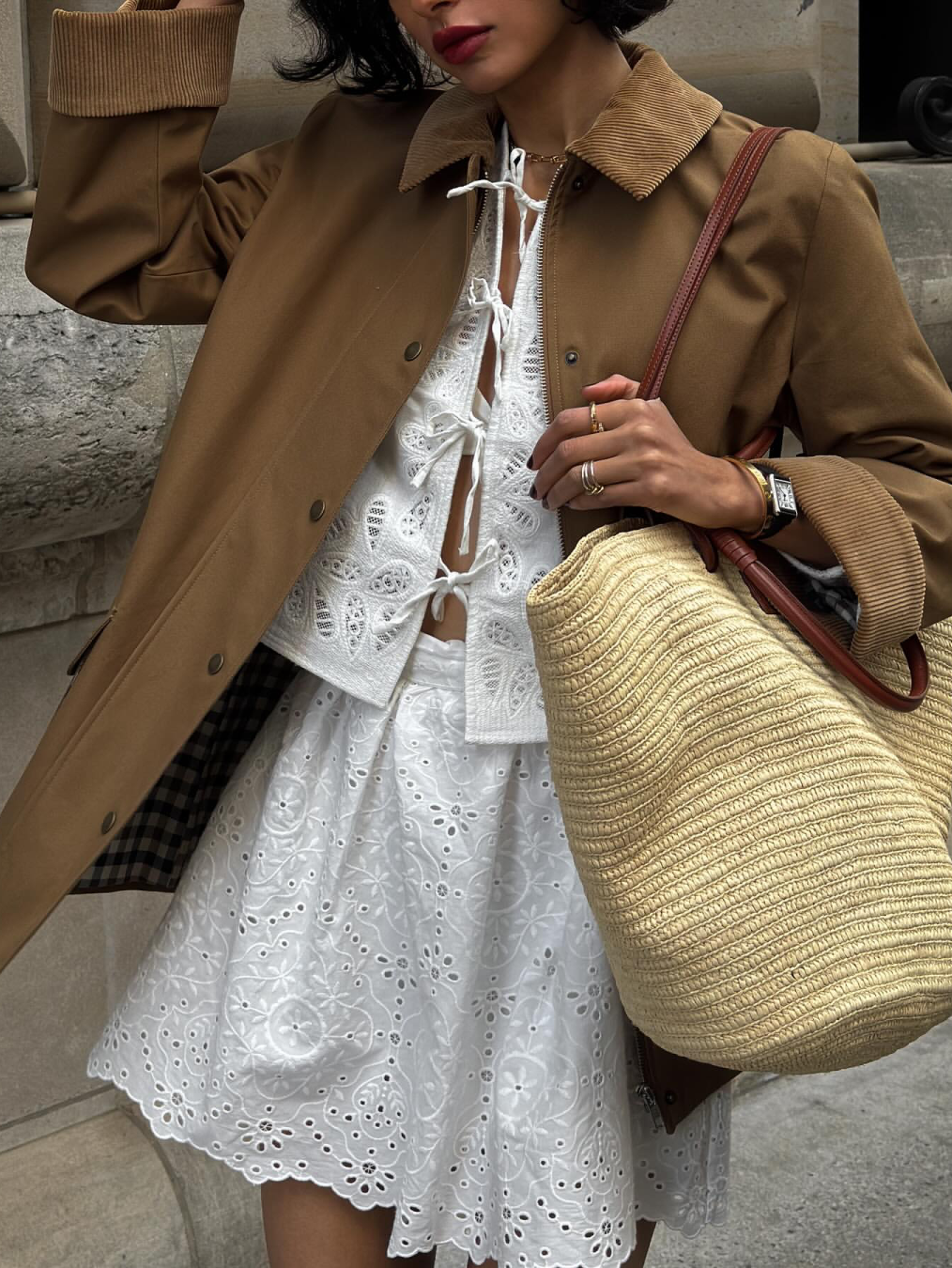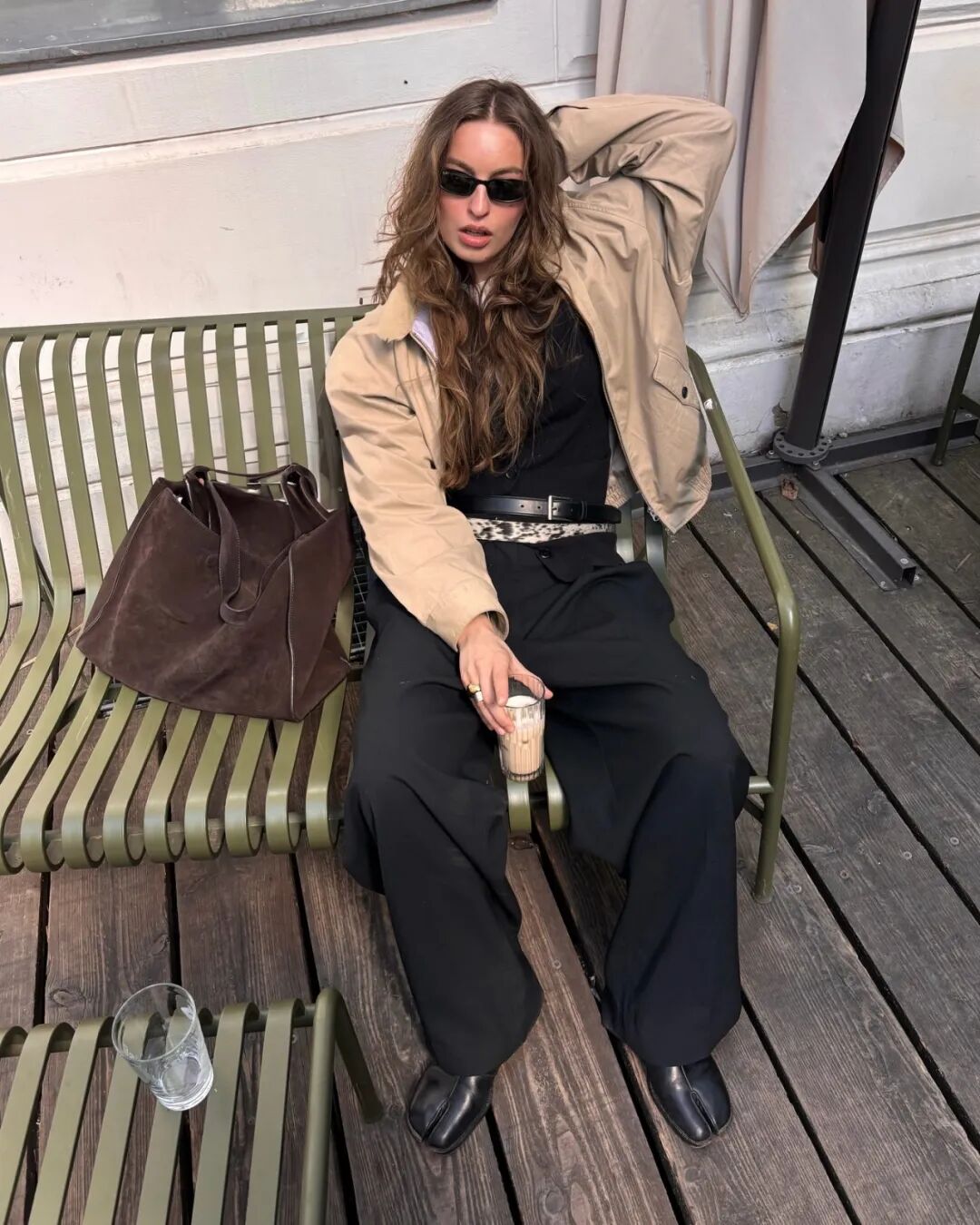 每层都选择相对轻薄的衣服,而不是单靠一件厚重衣物,这样可以在一天中随温度变化灵活调整,同时不影响整体造型的完整性。