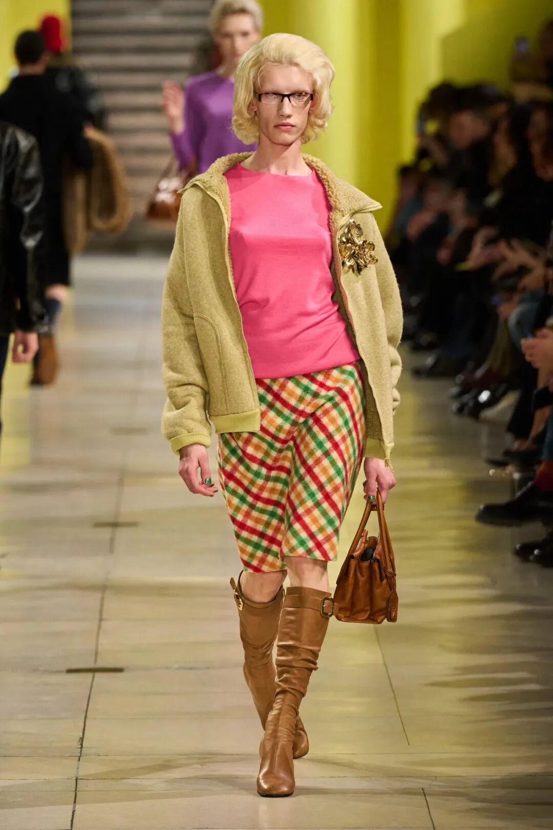 这股风潮也吹到了各大品牌2025秋冬系列。Gucci用跳脱的紫色、绿色、杏黄等色糅进不同材质的单品,在碰撞中带来更丰富的视觉趣味。