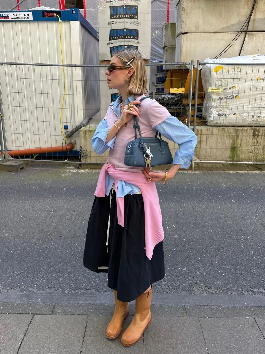 失序美学的精髓在于打破常规比例。尝试内外搭长度错开,在长款衬衫裙外搭一件短款针织背心,再配上一件长度介于两者之间的牛仔外套,营造出参差有序的层次感。