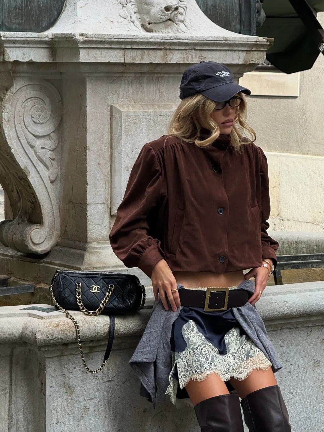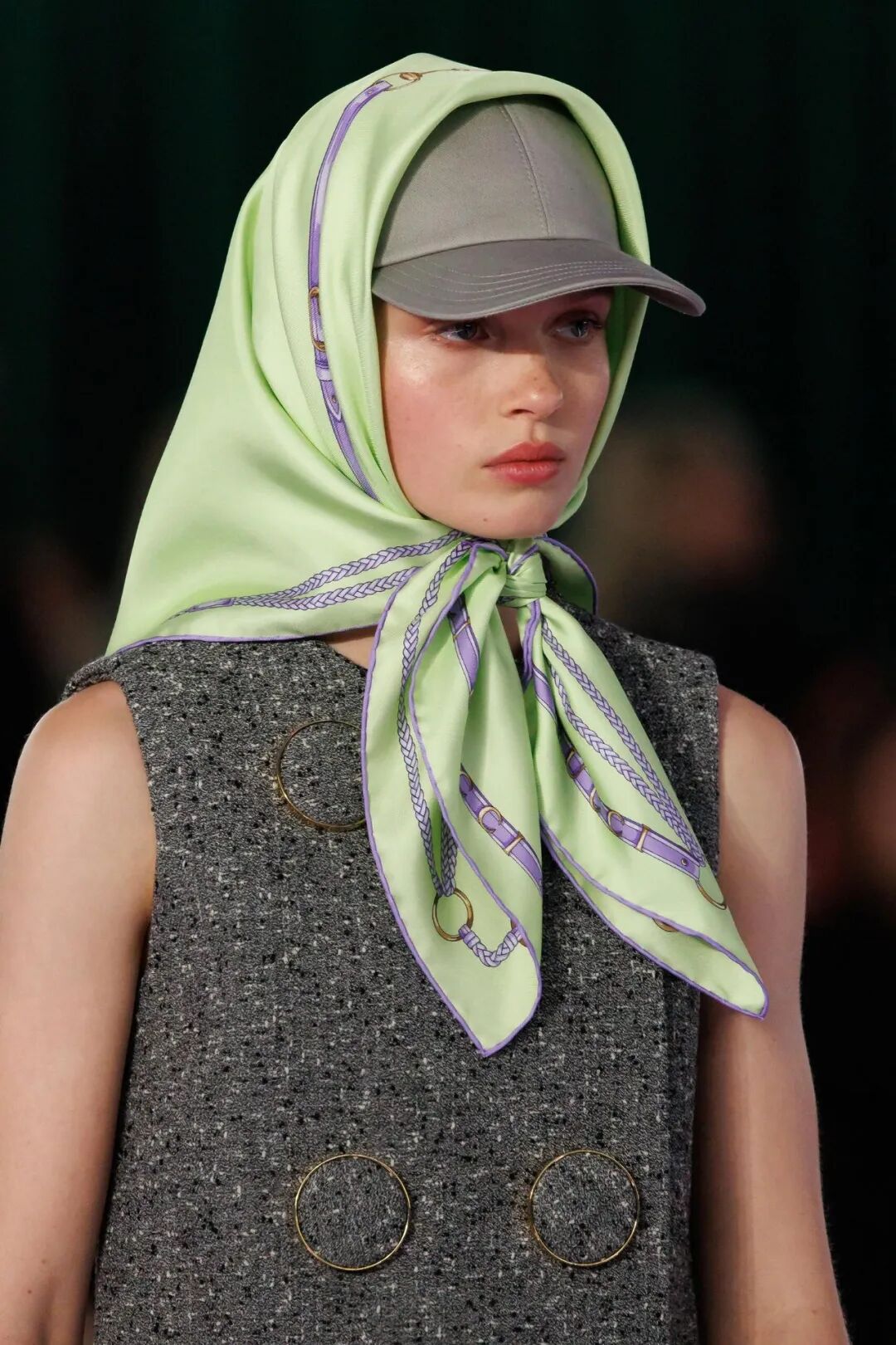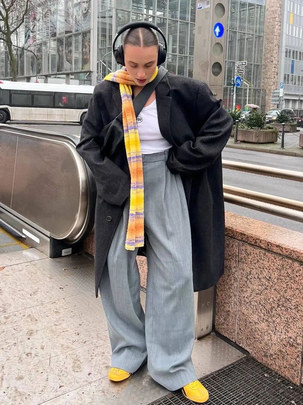彩色围巾、夸张腰带这些单品让整体穿搭打破常规,夏季草编包配秋装或冬季毛绒包提前登场,这种季节错位是失序感的直接表达。
