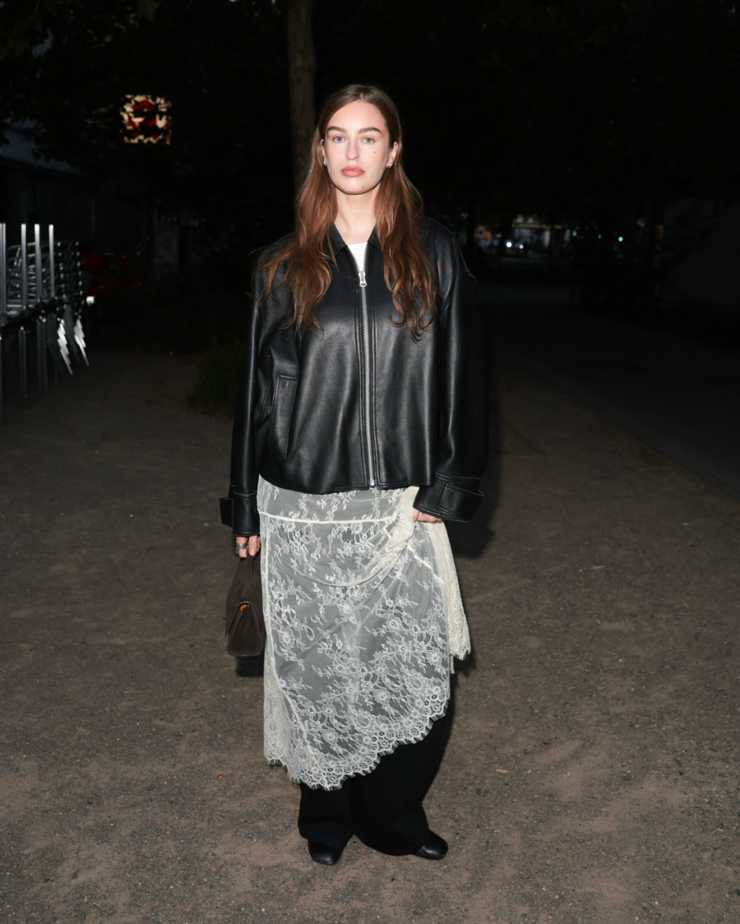 失序感穿搭中,材质特别的基础款也可以成为灵感单品。比如自带高级感的丝绸衬衫,与粗糙材质形成鲜明对比;硬朗外套与卫衣的松弛形成有趣对比,打破常规材质组合。