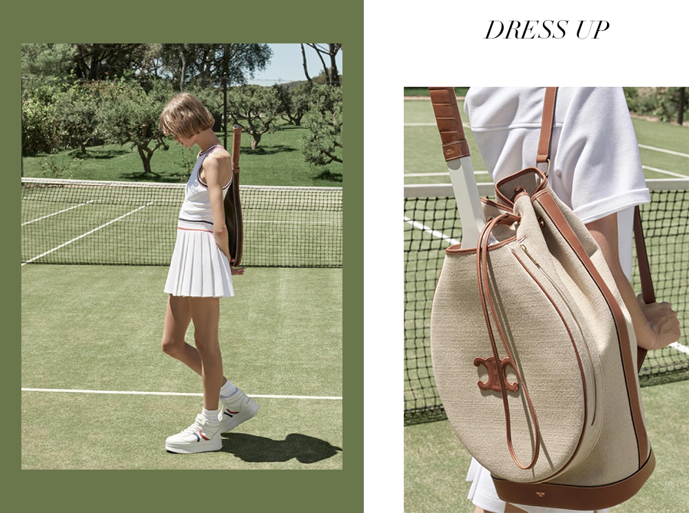 在CELINE的网球主题胶囊系列中,白色Polo衫与网球裙的搭配干净利落,满满的少年感。而包袋、棒球帽与太阳镜等配饰的加入,更为造型增添了丰富的层次感,演绎了CELINE独有的巴黎式运动美学。