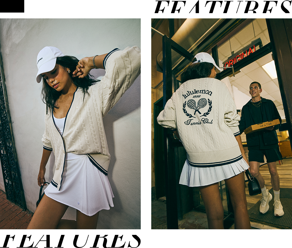 想要营造秋冬氛围感,那就不能错过lululemon新季网球系列中的绞花针织开衫。宽松剪裁和复古学院风绞花纹理,自带一股书卷气的松弛感,除了当作外套,还可以随意搭在肩上或系在腰间。搭配一条侧边褶饰网球裙,灵动的褶裥随风摆动,既不失正式感,又洋溢着恰到好处的活力。