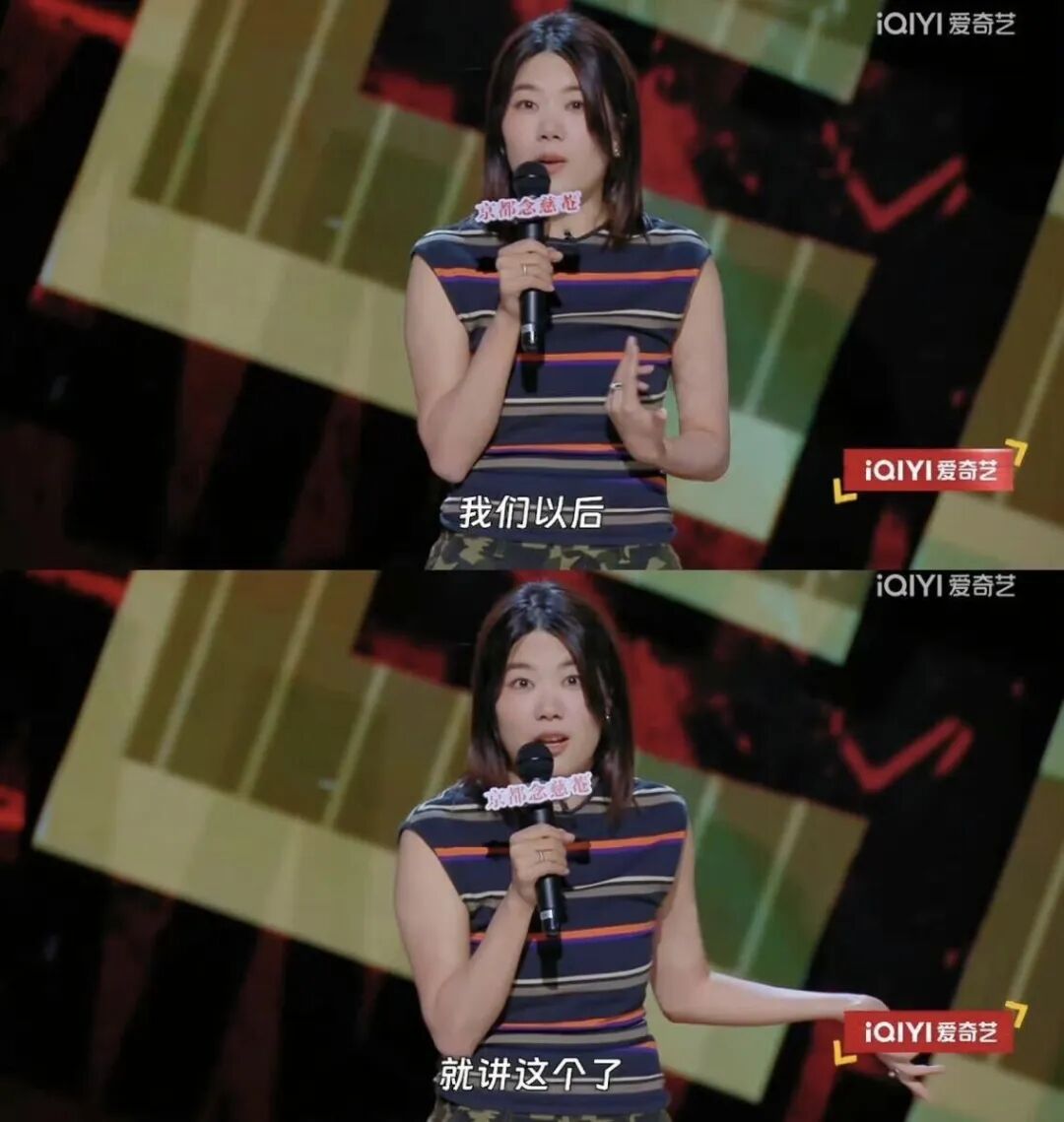 是房主任说:“我希望我两个姑娘不需要重复我的路,希望我可以永远在脱口秀的舞台上务工,未来女儿回来只要开口,我就会说一个字:离!”