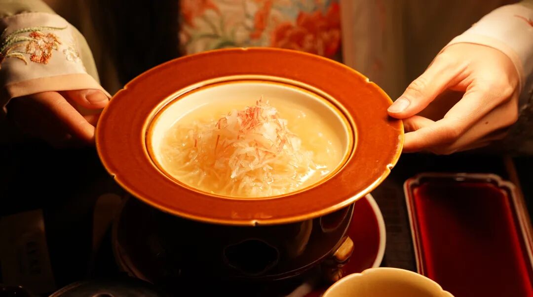 所谓水席有两层含义,一是道道菜离不开汤汤水水,二是上一道撤一道,如同行云流水。水席24道菜,吃得滋润、酣畅,也勾起了小婉味蕾上的乡愁:“水席里每一道菜都非常符合我的口味,酸酸辣辣,汤汤水水。吃完之后还能出出汗,舒服得很,像回到小时候。对于现在的我来说,认认真真吃一顿饭太珍贵,也太重要了。”