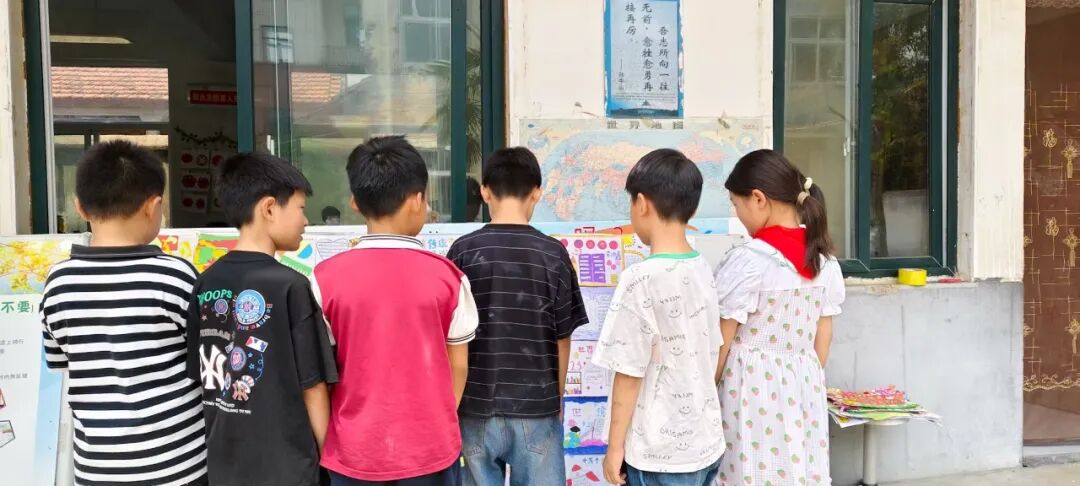 为了展示孩子们的美育成果,校园里处处可见用心布置的日常展览:展板上贴满了童趣盎然的画作,树荫间牵起的绳子挂满摇曳的彩扇和精巧的手工。普老师说:“每当有展览,下课铃一响,孩子们就像小鸟一样飞扑过去,找到自己的作品,骄傲地指给伙伴看。”