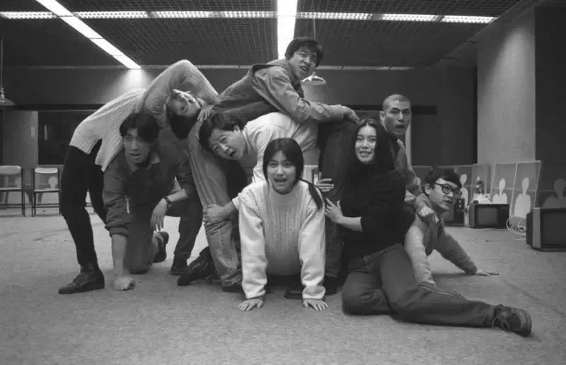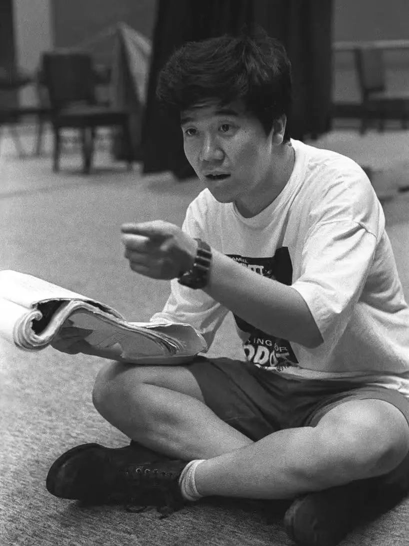 左:孟京辉,1993年8月25日摄于前中央实验话剧院《阳台》排练现场。