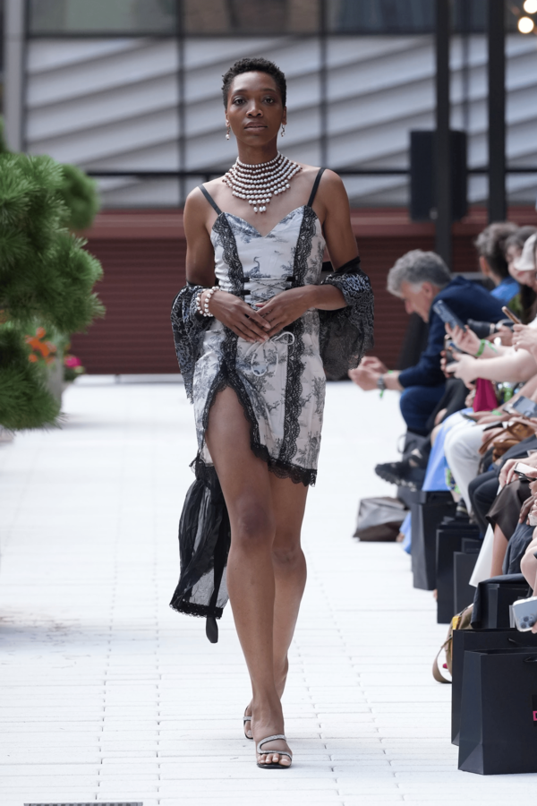 本季发布由创意总监 Alina Kotsiuba 携手造型师 Jaqueline Lunkes 倾心策划,她们以极具掌控力的编排,将服装与配饰巧妙融汇,呈现出一系列浑然天成、令人过目难忘的造型。秀场看点,从布料堆叠出的夸张廓形,到轻盈真丝展现的柔美气质,再到大胆配饰勾勒出的先锋态度,张力与柔美并存。不同风格与流派在此交汇,既有摩登都市的利落剪裁,也有极富实验性的艺术表达。