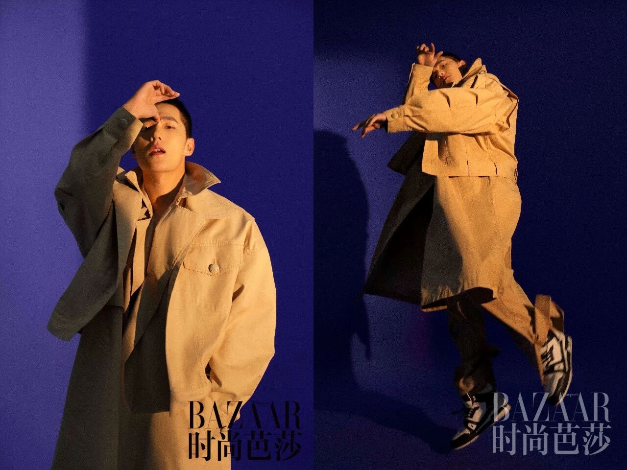 是日,上海暴雨如注,未及傍晚已天色晦暗。刚结束见面会活动的杨洋,匆匆赶到摄影棚,无缝连接杂志的拍摄工作。和两年前拍摄BAZAAR封面时相比,杨洋的变化几乎是脱胎换骨式的。他剪了寸头,晒黑了皮肤,练起一身肌肉,谈话间不复少年时的稚拙,几乎带着难以抑制的兴奋将感触讲到最透彻。