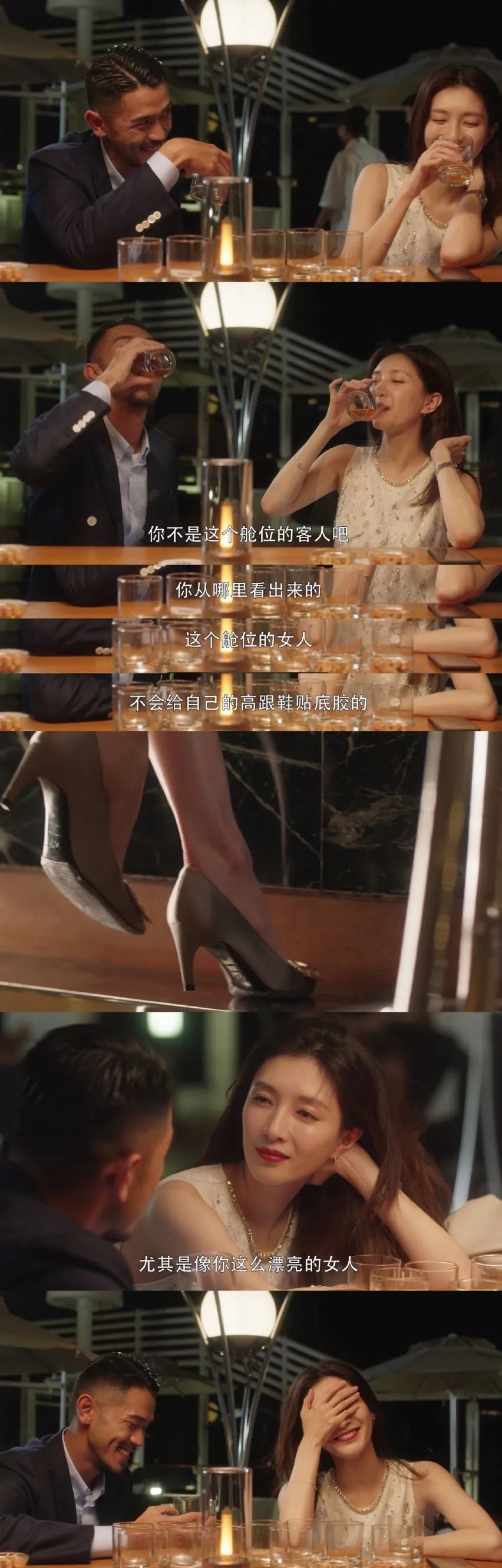 王漫妮满嘴的爱情,但在以女朋友的身份跟着梁正贤参加私人聚会时,品威士忌,穿梭于高端圈子,去见各种有钱人,看得出来她也特别的享受其中;