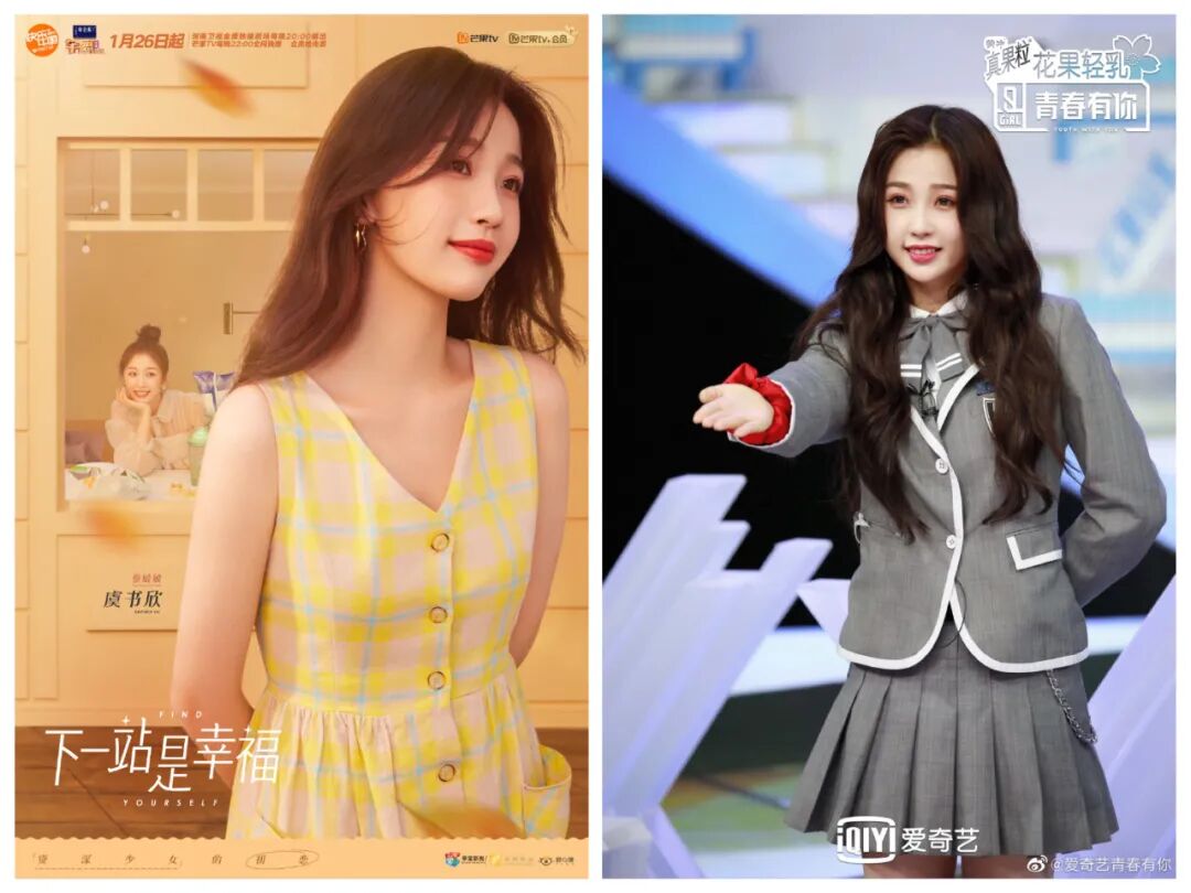 《下一站是幸福》第一次被大家记住角色名,选秀《青春有你2》又以女团身份再次爆火,2020年虞书欣瞬间从小演员晋升到一线女爱豆。
