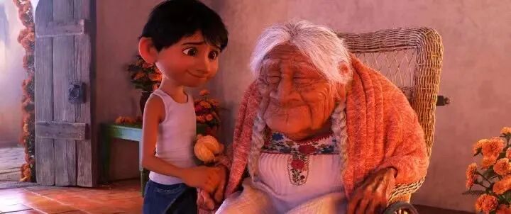 当年米格的高祖父为了音乐而远走他乡,抛下了家人一去不回。高祖母一气之下绝不允许家族里任何人再碰音乐,家族里唯有神志不清的曾外祖母可可不反对音乐,所以米格最亲近她。