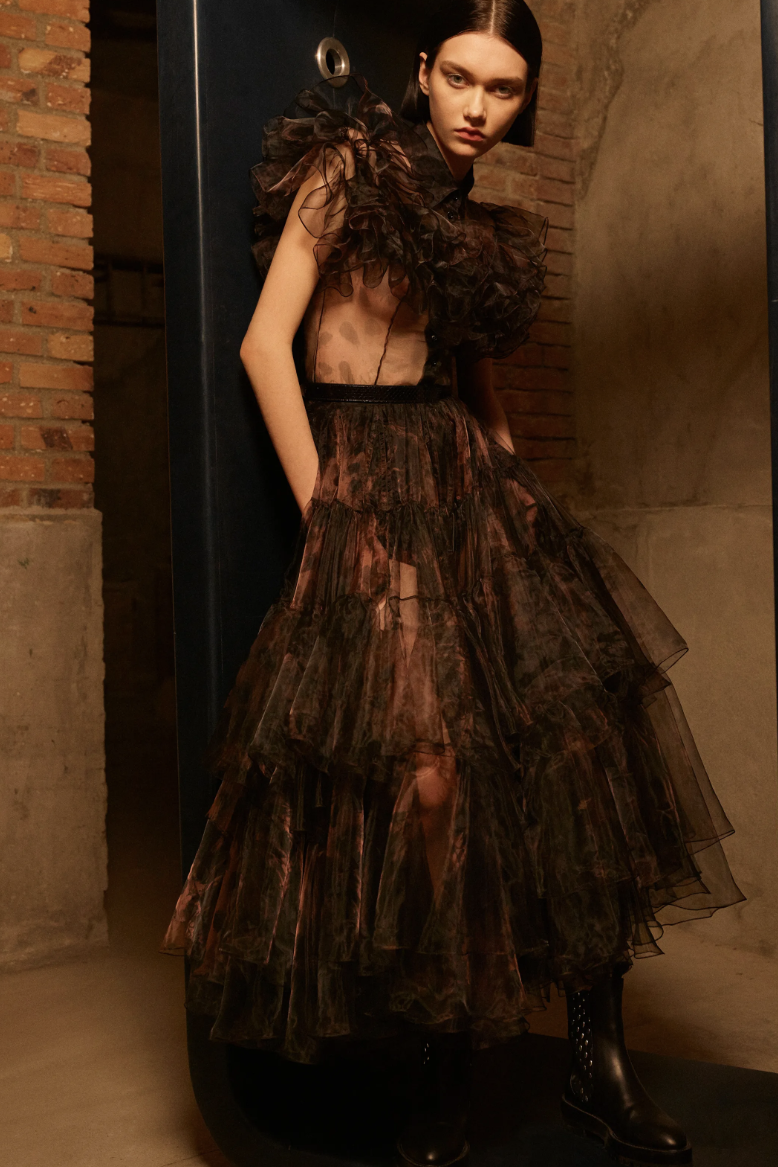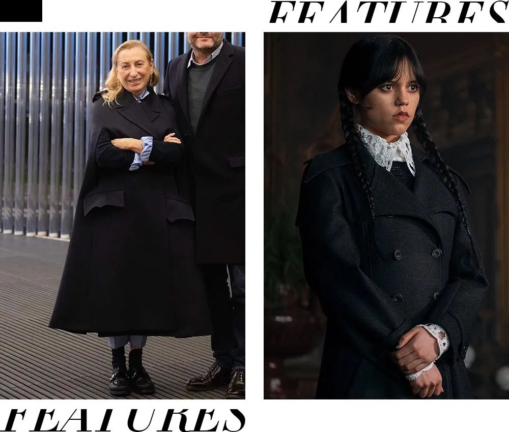 黑色、白色和浅灰表现的哥特风格,如何才能既有来自另一个时代的疏离感,又不失现代风格?剧集的服装设计Colleen Atwood从Miuccia Prada的设计中找到了答案。