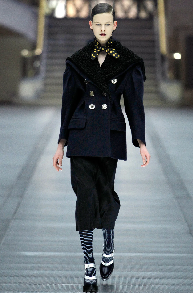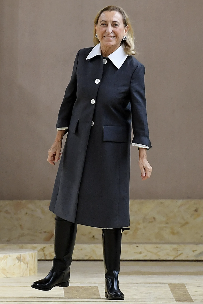 Miuccia本人对于制服式时装也很痴迷,不光在Prada的设计中将制服式大衣作为经典元素,她的私服也有几分星期三式的暗黑学院风。