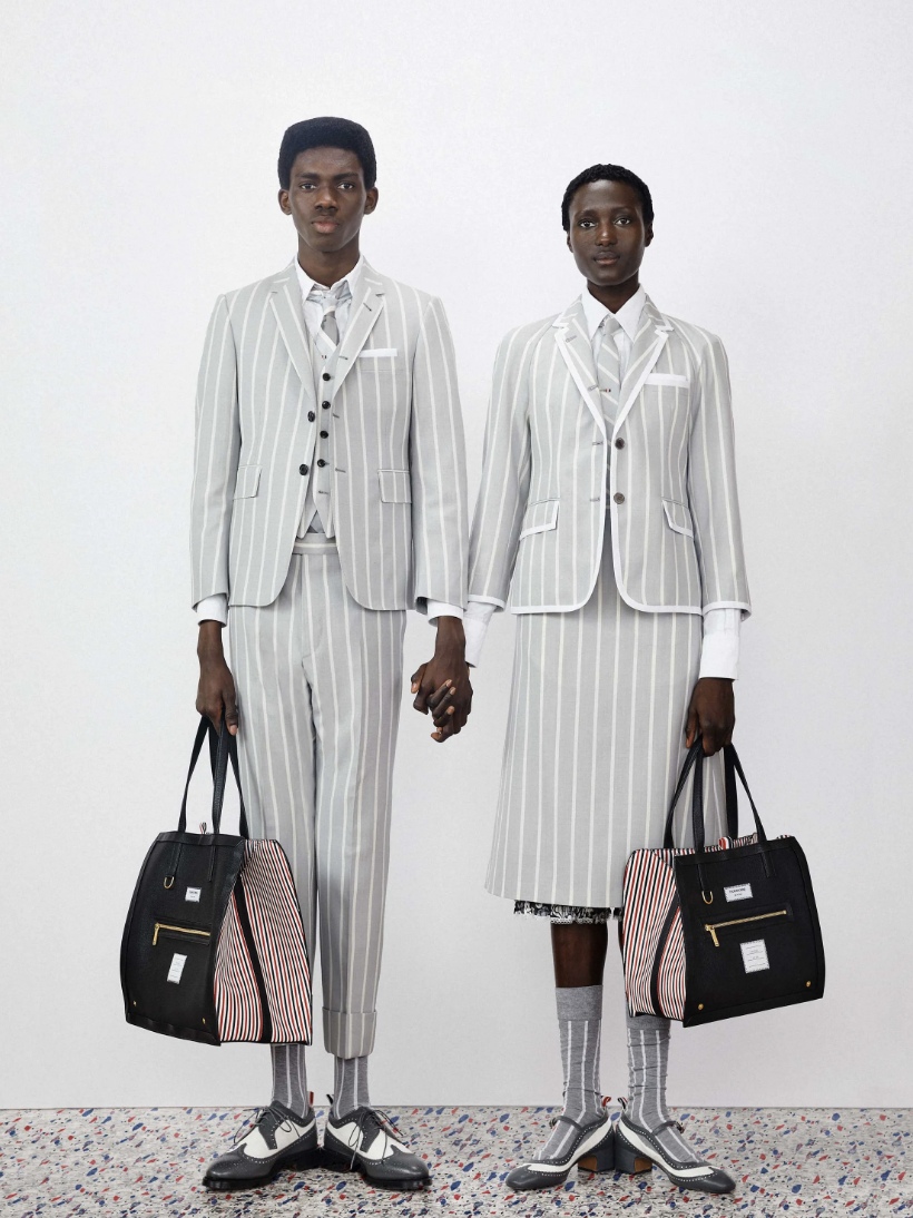 说起学院风的制服,就不得不提到Thom Browne,因为大概没有任何一个品牌会比它更符合星期三古怪中的可爱。Thom Browne制服中最重要的一个设计点就是“超乎寻常的合体感”,考究到有些偏执的制服正符合Nevermore学院的诡异气氛。