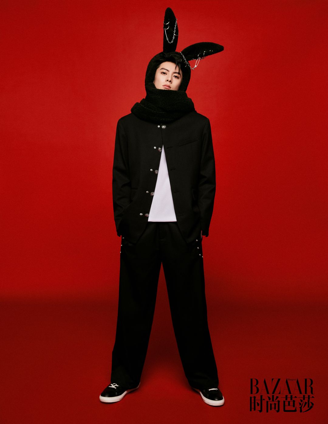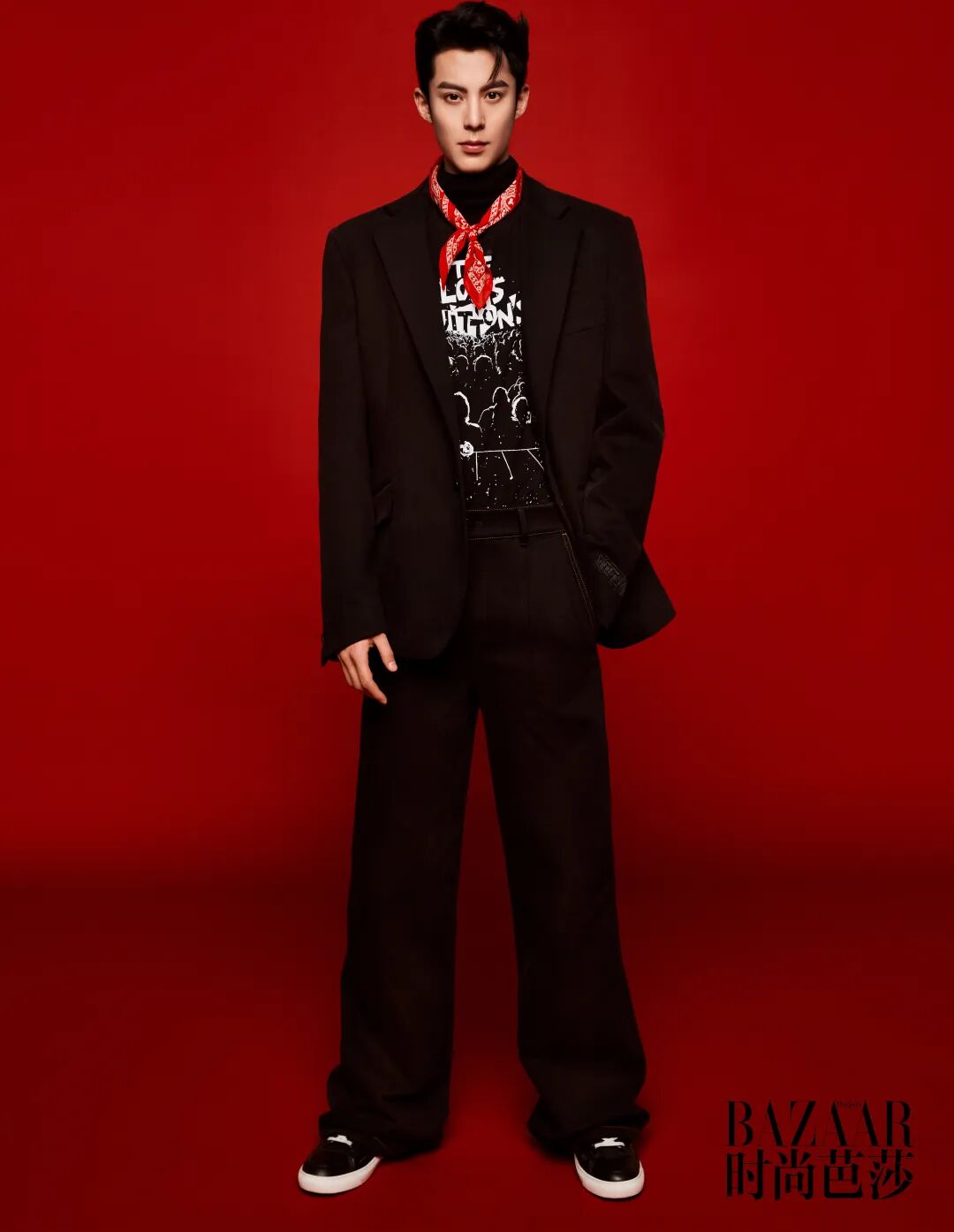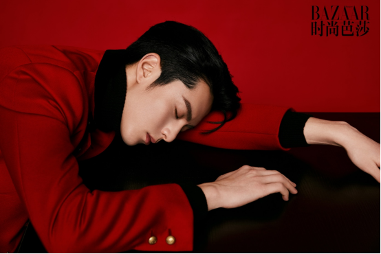 红色西装、高领毛衣 Ralph Lauren Purple Label第一次看见王鹤棣,或许你会是在2017年,他获得了真人秀《超次元偶像》的冠军,青涩无畏地面向镜头,开始走向以前未曾想过的人生;第一次知道王鹤棣,或许还是2018年——新版《流星花园》播出,坏笑热血的“道明寺”正式走上了演艺道路;第一次认识王鹤棣,你多半会从他的言行中感受到,他直率又纯粹得一如最初……