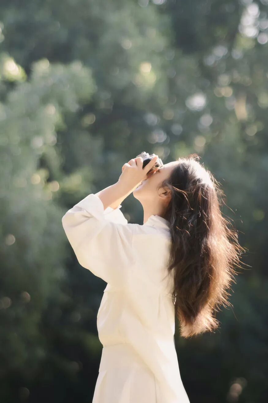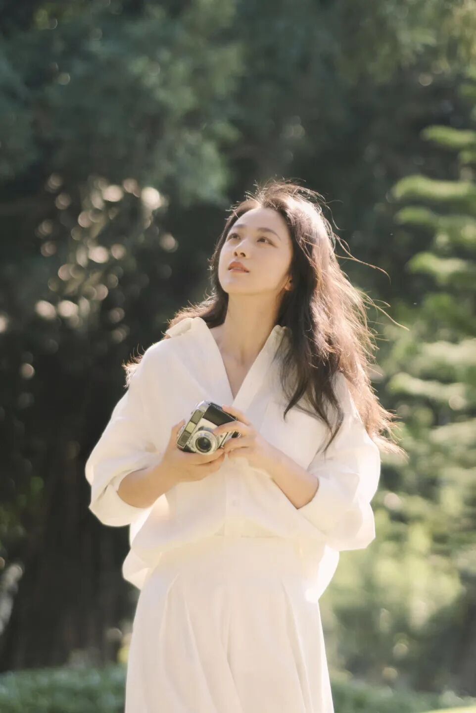 在穿搭上,莫兰迪色系和浅色系很适合她。尤其是all white穿搭,能增添呼吸感,轻盈又灵动 。